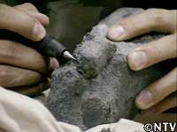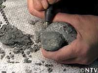 Žwœi‚Rj ’·‚³5.5 cm@‘¾‚³3.5 cm 121“ú–Ú‚©‚ç125“ú–Ú‚É‚©‚¯‚Äì‚©‚çŒ@‚èo‚µ‚½Šâ”Õ‚ðA129“ú–ڂɃNƒŠ[ƒjƒ“ƒO‚µ‚Ä‚¢‚éÅ’†‚É”Œ©‚µ‚½B ƒGƒAƒ`ƒ[ƒ‹‚ðŽè‚É•±“¬‚·‚邱‚Æ‚QŽžŠÔA‚悤‚₃NƒŠ[ƒjƒ“ƒO‚ªI—¹‚µA“ñ‚‚̉»Î‚ÍAŒ©Ž–‚ɂЂƂ‚ɕœŒ³‚³‚ꂽB 130“ú–Ú‚ÉA’·’J씎Žm‚ɊӒ肵‚Ä’¸‚¢‚½Œ‹‰ÊAŽñ’·—³‚ÌŽwœ‚Å‚ ‚邱‚Æ‚ª”»–¾B |