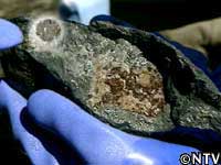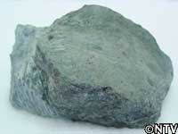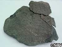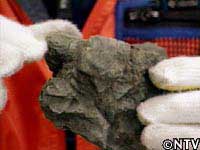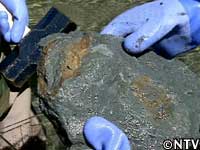 Žwœi‚P‚Xj •1.6‚ƒ‚@’·‚³2.2‚ƒ‚ ‹´–{‘àˆõ‚ª‘æˆêƒv[ƒ‹‰º—¬‚©‚甌@‚³‚ꂽ‚Q‚O‚ƒ‚‚قǂ̊DF‚ÌŠâ”Õ‚ð‚P‚‹‚‡ƒnƒ“ƒ}[‚ÅŠ„‚Á‚½‚Æ‚«‚ÉAŠâ”Õ‚Ì’†‚É–„‚Ü‚Á‚½Œ`‚Å”Œ©B |