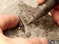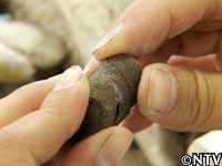 Žwœi‚R‚Pj ’·‚³3.0 cm@‘¾‚³0.8 cm ‘æ‚Pƒv[ƒ‹‚ÅŒ@‚èo‚µ‚½Šâ”Õ‚Ì’†‚©‚çA220“ú–Ú‚ÉA‹´–{‘àˆõ‚ª”Œ©‚µ‚½B ‹´–{‘àˆõ‚ªƒnƒ“ƒ}[‚ÅŠâ‚ðŠ„‚Á‚½‚Æ‚±‚ëA‚¢‚Â‚à‚Æ‚Í”÷–‚ɈقȂ鉹‚ª‚µ‚½A‚ÆŒ¾‚¤B |