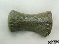 ‘å‘Úœi‚Qj c6.5 cm@‰¡10.0 cm 134“ú–Ú‚Éì’ê‚ð”Œ@‚µ‚Ä‚¢‚½‘¾ˆê‚ªA15 cm‚قǂ̃mƒWƒ…[ƒ‹‚𔌩B‚»‚Ì•\–ʂɂÍAŽwœ‚炵‚«•¨‚ªAŠç‚ð‚Ì‚¼‚©‚¹‚Ä‚¢‚½B ˆê•”•ª‚ªŒ‡‚¯‚Ä‚¢‚é‚炵‚A‰½‚Ìœ‚Ȃ̂©‚Í—\‘z‚ª‚‚©‚È‚©‚Á‚½‚ªA’·’J씎Žm‚ÌŠÓ’è‚É‚æ‚èAŽñ’·—³‚Ì‘å‘Úœ‚Ìœ‚Å‚ ‚邱‚Æ‚ª•ª‚©‚Á‚½B ‚È‚¨A‚±‚̉»Î‚ªŠÜ‚Ü‚ê‚Ä‚¢‚½15 cm‚قǂ̃mƒWƒ…[ƒ‹‚©‚ç‚ÍA‘¼‚É‚àAŽwœ(9)‚ȂǕ¡”‚Ìœ‚ªo“y‚µ‚½B |