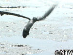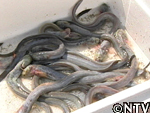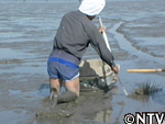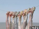 ワラスボ漁は独特で、潟スキーと呼ばれる板に方膝をつき、もう一方の足で潟をこいで行なう。長さ70cm余りの竹に鉄の刃がついた道具で泥の中をひっかき回し、刃の先端についたカエシにワラスボをひっかけて獲る。