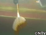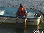 江戸時代から引田で行われている伝統漁法。船の舷側から箱眼鏡で海底を覗き、先端が鉤状になったカケジと呼ばれる道具を使い、魚介類を引っ掛けて獲る。