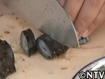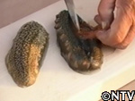 作り方 材料 ナマコ 5〜6匹、砂糖 50g、きな粉 80g @ 腸を取り除いたナマコをぶつ切りにする。 A 沸騰した湯の中に切ったナマコを入れて1分から2分さっと茹でる。 B 湯がナマコの色素で茶色になったら湯から取り出し、冷水でさっと冷やす。 C 水をよくきったナマコに砂糖ときな粉をまぶして完成。