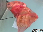 B 温泉に浸けた木片を120〜180℃の油で4時間ほど揚げる。