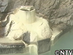 2本の源泉を持ち、湯量豊富な白濁の湯は男女別の内風呂、混浴露天風呂、つり橋を渡った場所にある岩風呂が楽しめる。