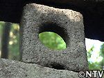 額塚の中央にある直径15pの穴に3回石を投げてうまく通ることができれば願いが叶うといわれている。