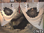 石を投げて、縦40p、横50pのガマの口に入れば、祈願成就。