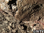 富士山の麓にある船津胎内神社の賽銭箱奥にある「船津胎内樹型」。