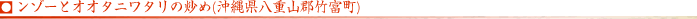 ンゾーを、バター、ニンニク、オオタニワタリ等と炒めて作る。 |