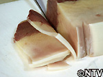 1 本皮の表面にあるビニール質の膜があるので包丁で取り除く。