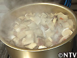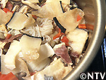 6 調味料を入れて水を足し、30分程炊けば出来上がり。 |