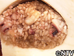 3 ゲソを細切れにし、もち米と混ぜて胴の中につめ、口を串で閉じる。この時、米は胴の半分くらいまでにする。