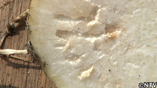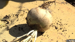 桃園農家の宮澤さんご夫妻が育てている家庭菜園の脇にある土室で冬を越して、スが入ってしまったカブを分けて頂いた。