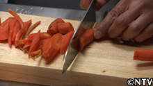 ②野菜(カブとにんじん)を、一口サイズに切る。