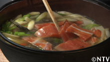 ⑤アカネマスを骨ごとブツ切りにし、煮込む。