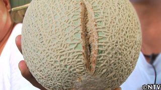 自宅で出荷作業をしているという事で案内して頂き、割れてひびが入り、ここまでの物は他の人にも譲れず、自宅でも食べないというメロンを頂いた。