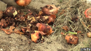 今年1月に収穫し、人にあげようととっておいたが古くなった玉ネギ。