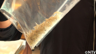 しらすを量り売り際に、カゴの周りに落ちてしまっていたもの。