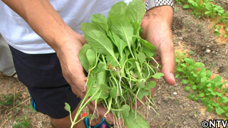 さらに、小松菜を間引いたものと、サツマイモのツルも分けて頂いた。