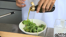 ④小松菜にオリーブオイル、塩コショウで味付け。
