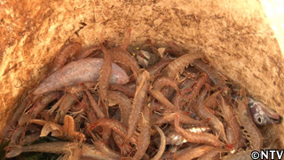 網にかかった中途半端で数が少ない魚などは商品にできず、小さくて商品にならない。