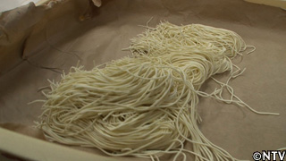 帯状の生地から細く麺の形に切る際に、最初と最後の端の部分は規定のグラム数(長さ)にならないため、捨てられてしまう。