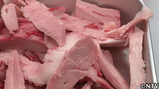加工作業の際、脂身は切り取り捨ててしまうという事で、その脂身を頂いた。