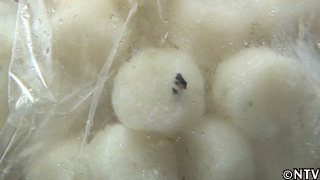 試作品として作ったが、小さすぎて販売できなかった、フグの皮入りつみれがあり、従業員の方が持ち帰る分は残っているというので頂いた。