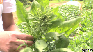 花の咲いたホウレン草は、味が落ちてしまう為、捨ててしまう。ほかにも、間引いた大根、虫食われたラディッシュを頂いた。