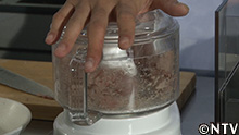 2.シイラの身をフードプロセッサーにかけて、すり身になったら塩を加えて再度フードプロセッサーにかける。 塩は魚の2%の分量。 |