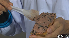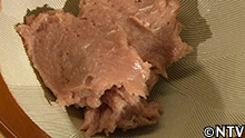 5.かまぼこ板に形を整え、蒸し器で10分蒸して、ひじき入りかまぼこの完成。 |