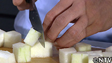 6.冬瓜は皮をむいて種を取り、一口大に。 |