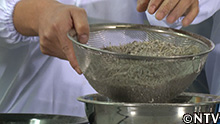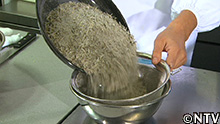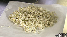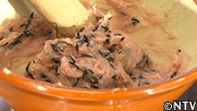 9.いりこ(ちりめん)をザルで振るい、ゴミを取り除く。 |