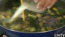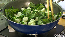 12.ごま油でキャベツと冬瓜を炒める。 |