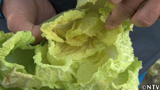 十分に生長せず、中身もスカスカで捨ててしまう白菜、温度が足りず生長しなかったレタス、低温で葉が黄色く変色し、これ以上大きくならない傷んだサラダ菜を分けて頂いた。