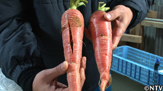 井川さんは、雪の中で育てる、雪中ニンジンや雪中キャベツを作っているが、こだわりが強く、少しでも色が悪かったり、傷が付いているものは売らないというこだわりが。そのため、収穫しても約半分は廃棄しているというので、分けて頂いた。