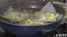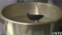 5.《スープ作り》 ヒラメのアラでとった出汁に、醤油・ミリン・塩を加える。 |