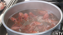 瀬川さんは甘エビをメインで獲っているが、その中にシマエビが混ざっていることがあり、小さいものは値段がつかず、箱代にもならないので捨ててしまうというので分けて頂いた。