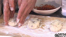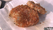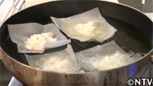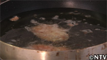 6.細かくしたエビの殻を衣にして、揚げる。 |