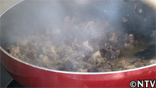 3.フライパンに能登牛のミンチを入れ、しょうゆ、砂糖、酒、みりんを加え、炒めていき、そぼろにする。 |