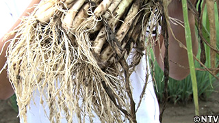 その数ゆえ、管理が大変な為、畑の一部に密集して育て、その苗の葉先を切り、改めて植えていくのだが、その過程では、葉先の重さで、白い部分が曲がってしまうものが出てしまう。