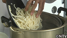 7.うどんを湯通しし、金華豚はサッと湯にくぐらせる。 |
