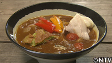山形県で作った0円料理。出汁は岩ガキを使い、トマトの酸味、玉ねぎの甘さをプラスしたカレーに、トッピングには、高級食材の金華豚、素揚げしたパプリカ。