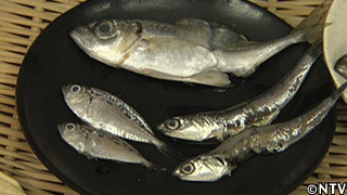 売り物の魚の中に混ざっていた、ギラ(オキヒイラギ)などの雑魚、傷んだセグロイワシ(カタクチイワシ)、アジ。