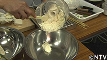 1.里芋をすり潰し、小麦粉を加え、生地状にする。 |