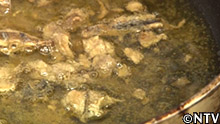 2.小魚は頭と内臓を取り、塩を振って少し置く。 置いた小魚をオリーブオイルで煮て、柔らかくなったら細かくする。 |