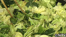 さらに、収穫時期を過ぎてしまい割れてしまったため、商品にならなかったキャベツと、千葉の名産・菜の花は、花が咲いてしまったため、こちらも商品にならずに捨てられていた。