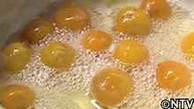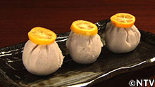 2.里芋を蒸し、すりつぶし、砂糖を加え、滑らかにし、中に煮たキンカンを入れる。 |