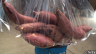 形の悪い芋や割れてしまった芋は冬の間は、干し芋として加工されるが、暖かくなったこの時期は干し芋の加工をしていないため、捨ててしまうという。
