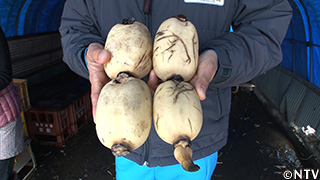 収穫の際に水圧で傷ついてしまったり、泥を落としたりする際に傷があるものは見た目が悪く、味も落ちるため、捨ててしまうという。